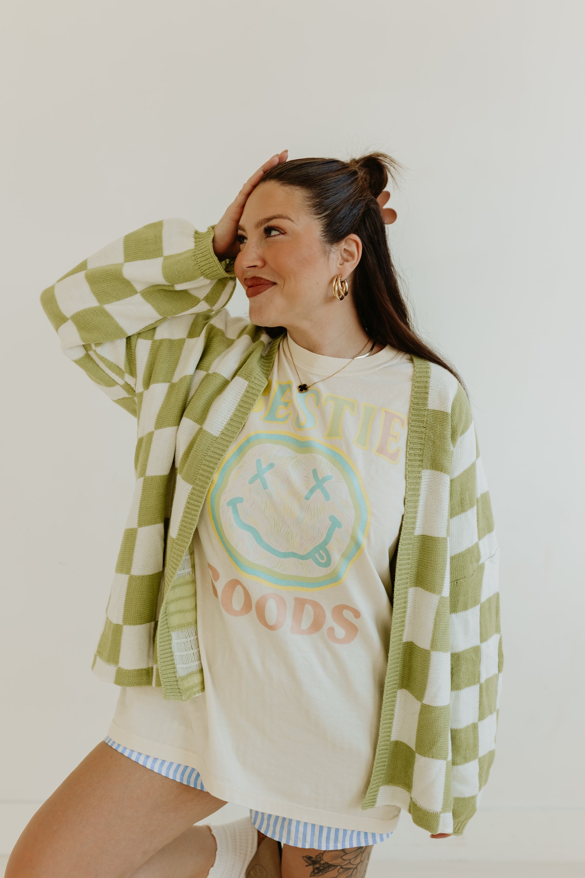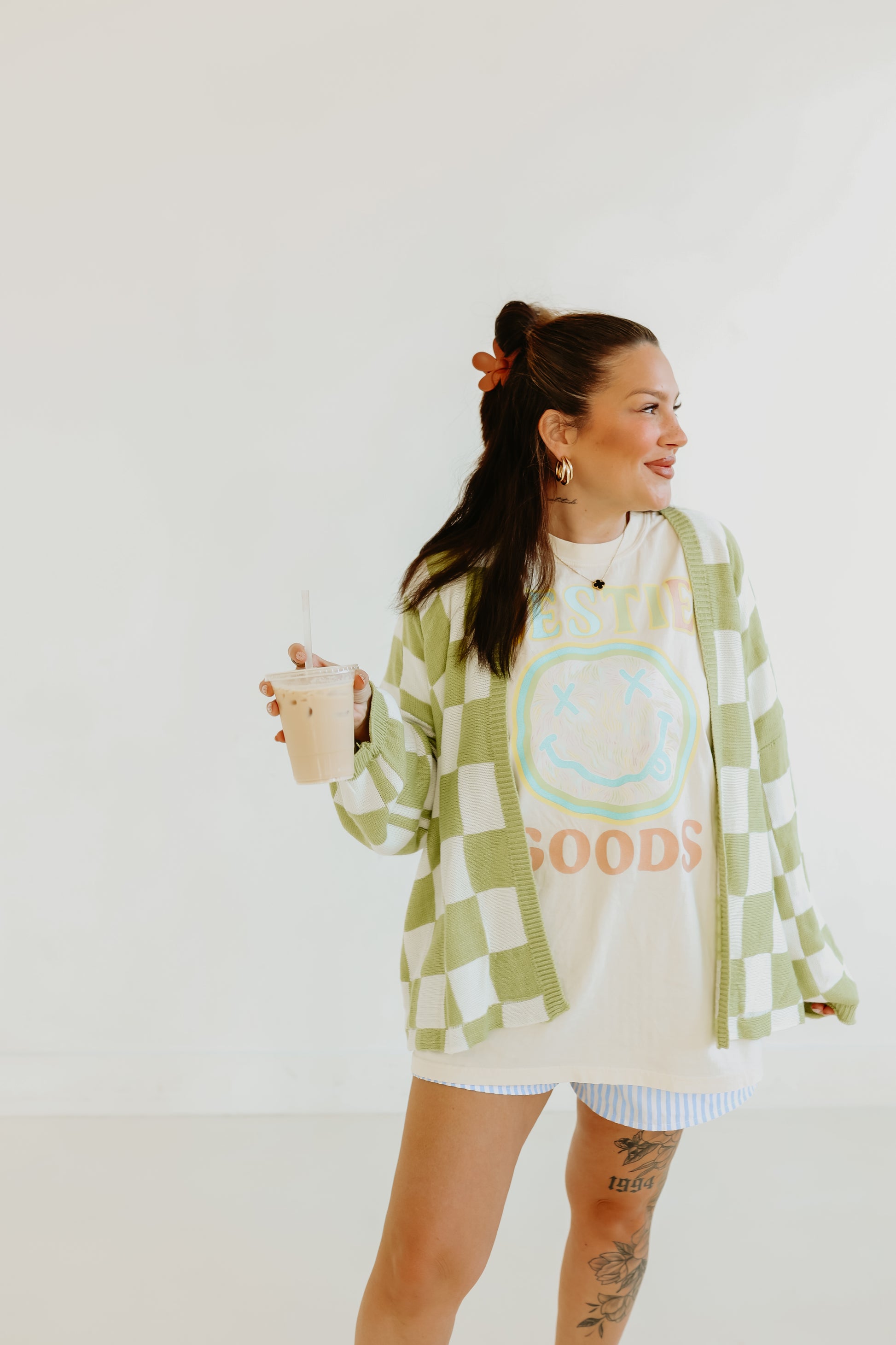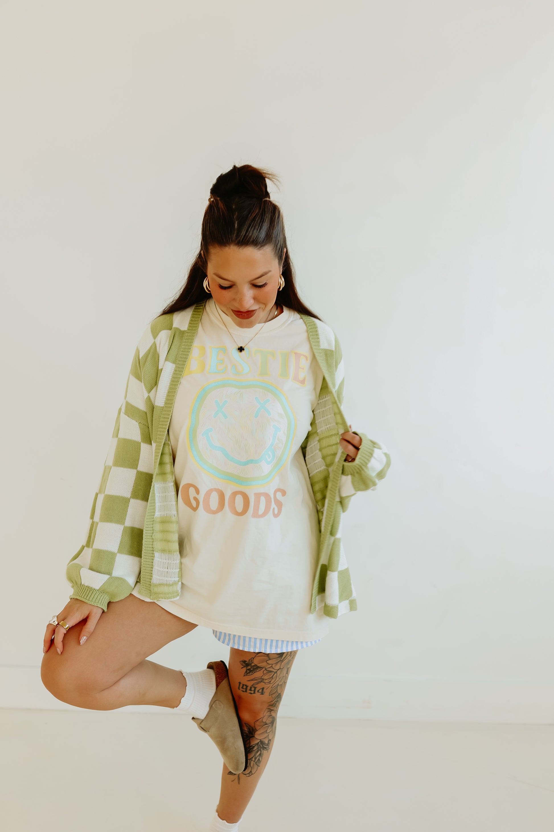 Meet your new fave graphic tee, bestie. The Drip Smiley shirt features a smiley with a slight distressed finish for that perfectly lived-in, vintage vibe. Topped with our bold Bestie Goods logo, this tee is made for chill days, coffee runs, and styling with literally everything in your closet.